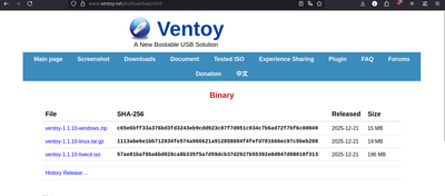 Ou sur ventoy-1.1.10-linux.tar.gz pour Linux.