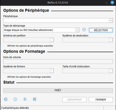 Si la clef n'est pas détectée, essayez de fermer puis relancer Rufus.